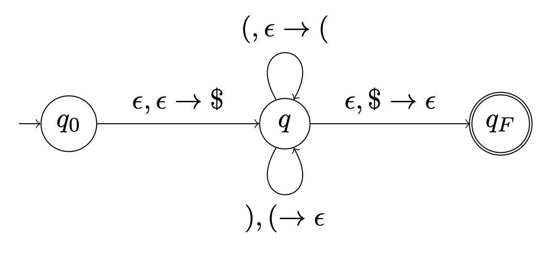 The following diagram is a proposed to accepted expressions with matching parentheses: